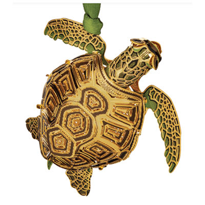 This ornament is exquisitely handcrafted in the USA from solid brass, finished with 24kt gold, screen printed with exquisite color, and packaged in a decorative window box with soft insert; great for gift-giving and storage.