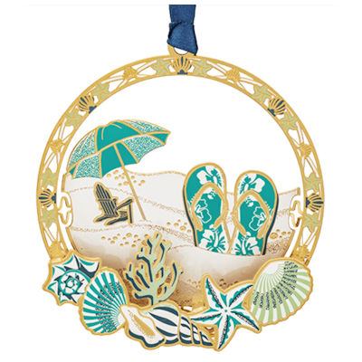 This ornament is exquisitely handcrafted in the USA from solid brass, finished with 24kt gold, screen printed with exquisite color, and packaged in a decorative window box with soft insert; great for gift-giving and storage.
