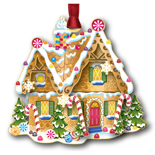 The Gingerbread House Christmas Ornament is a beautifully executed design with varying levels of dimension and depth. This piece adds a level of elegance to any decor.