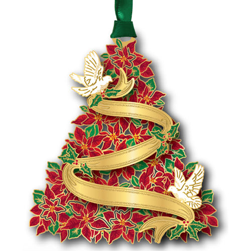 The Poinsettia Tree Christmas Ornament is a beautifully executed design with varying levels of dimension and depth. This piece adds a level of elegance to any decor.